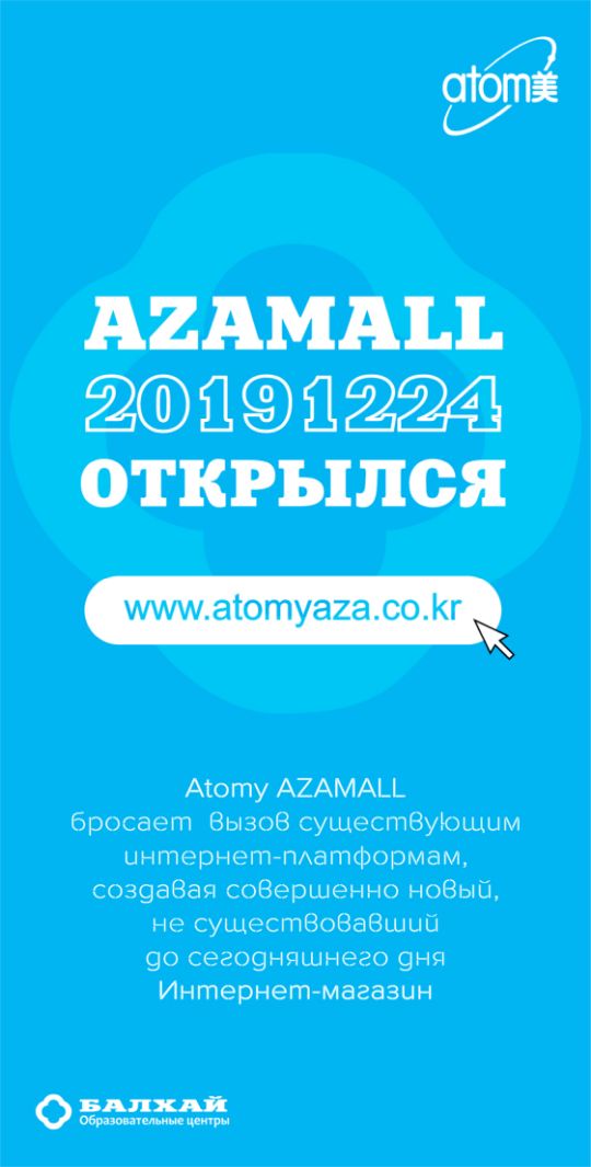 24 декабря 2019 года открылась новая интернет-площадка ATOMY AZAMALL! Atomy AZAMALL бросает вызов существующим интернет-платформам, создавая совершенно новый, не существовавший до сегодняшнего дня Интернет-магазин